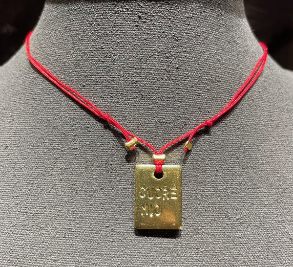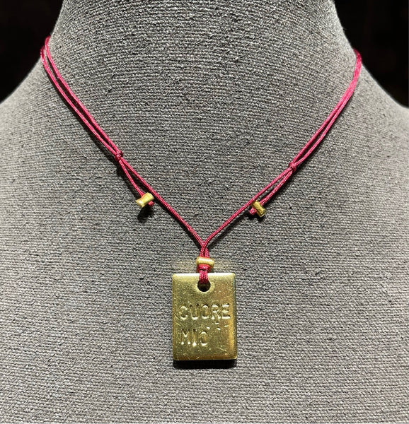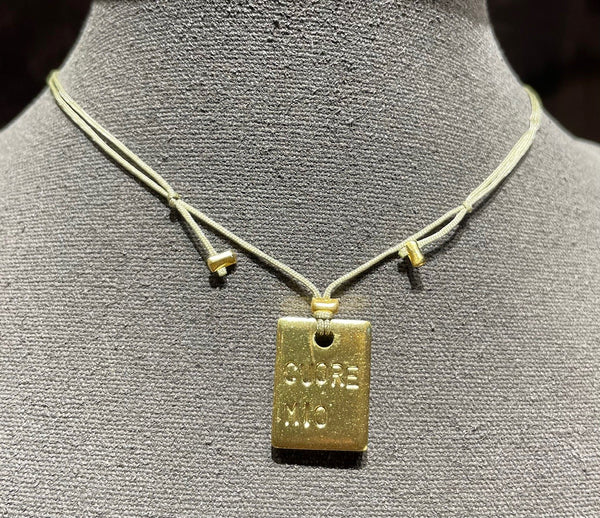 Piastrina messaggio con chiusura scorrevole, da cm 36 a 72 cm. Tutti i bijoux MrBiggy sono realizzati a mano, in ottone placcato oro, conformi alle normative CEE.
