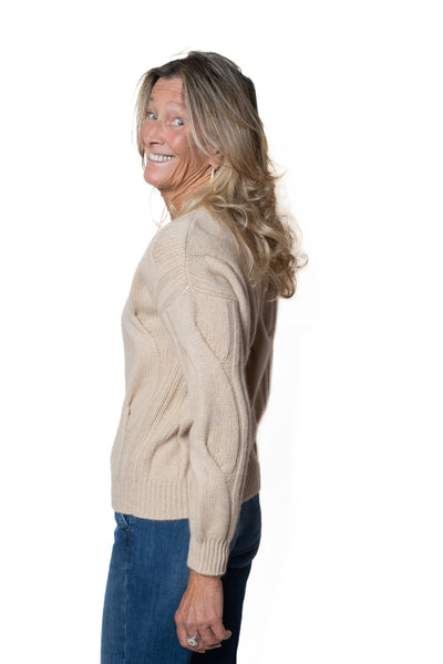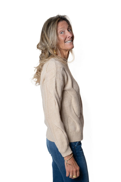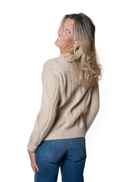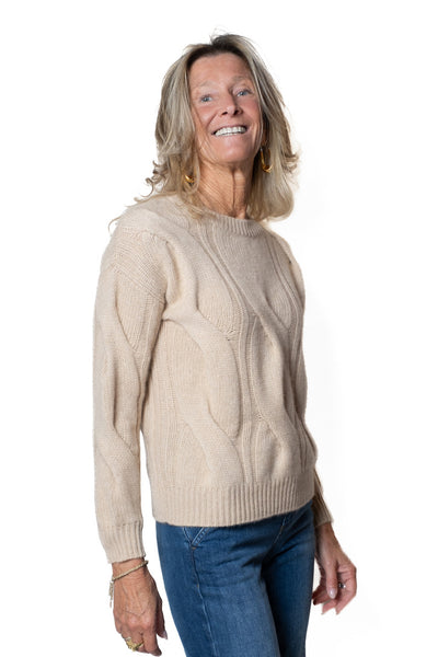 Maglione girocollo 100% cashmere lavorato a trecce a 8 fili.