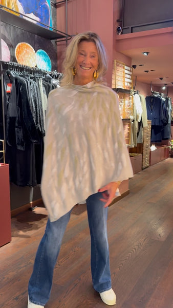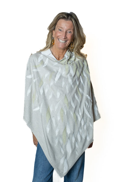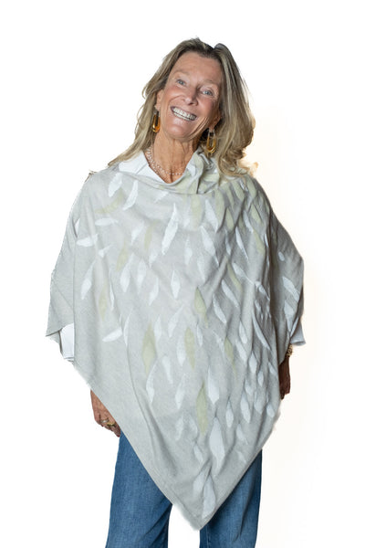 Poncho 85% seta, 15% cachemire. Dipinto a mano.