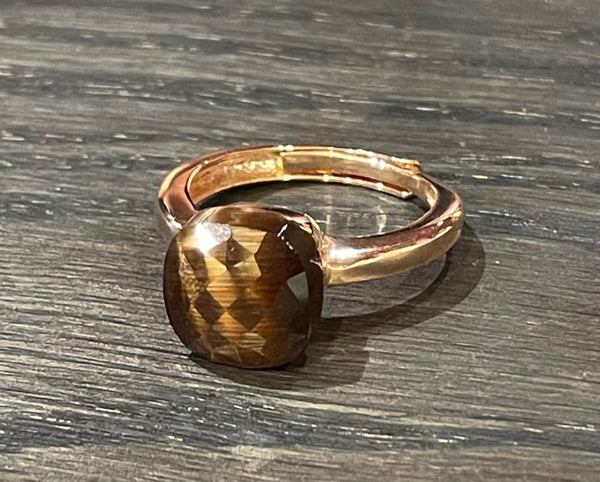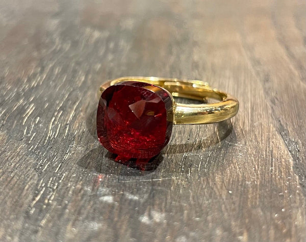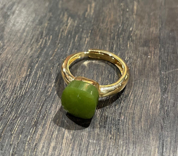 Laboratorio Orafo anello regolabile argento placcato oro, pietra sintetica