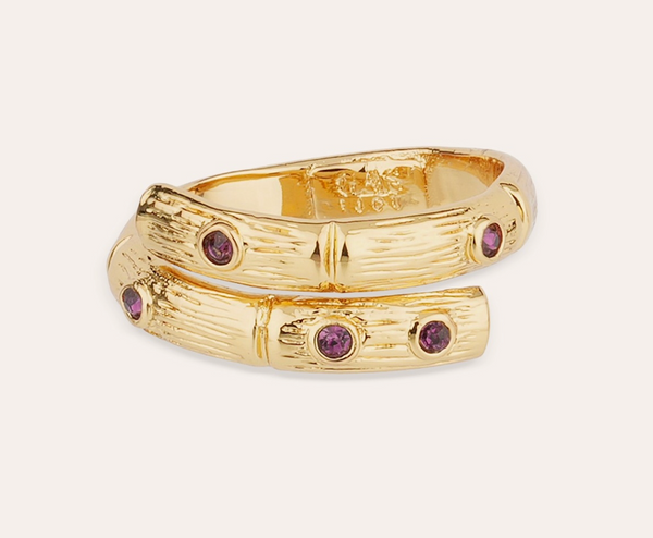 Questo anello finemente placcato in oro è impreziosito da cabochon realizzati a mano con strass colorati. Da indossare da solo per un tocco raffinato o in combinazione con altri gioielli per uno stile solare e deciso. Misura regolabile.