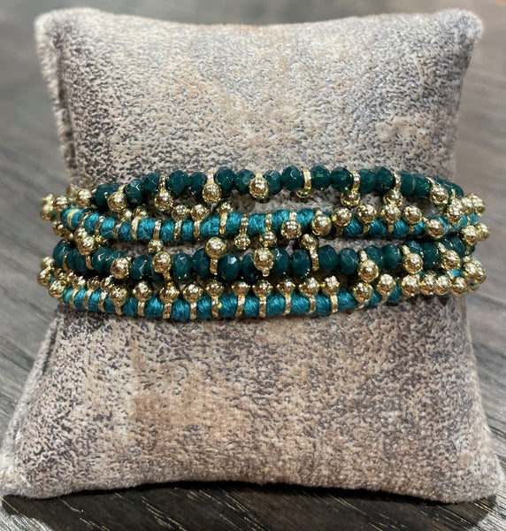 Questo bracciale fa parte di un progetto artistico in cui la stilista affianca da sempre l'impegno sociale che prevede l'inserimento nel laboratorio di donne indiane senza occupazione e la loro formazione specialistica per un migliore inserimento nella società. Manufatto realizzato in leghe metalliche e intreccio di cotone.