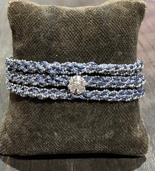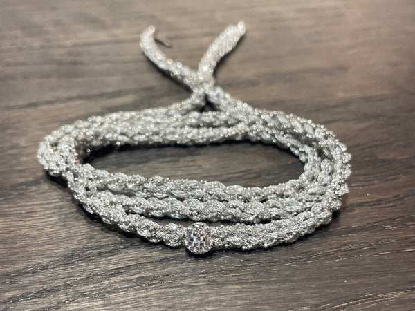 Collana fatta a mano, seta ed argento intrecciati a tubolare. elegante, eclettica: si indossa in molteplici modi. Potrebbe variare la forma del cursore.
