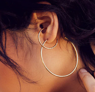 Orecchini design, raffinati ed eleganti,argento placcato oro, Diametro 5,5 cm.